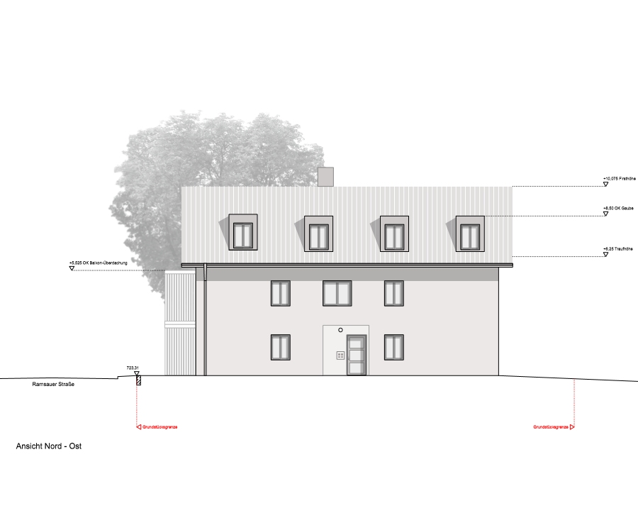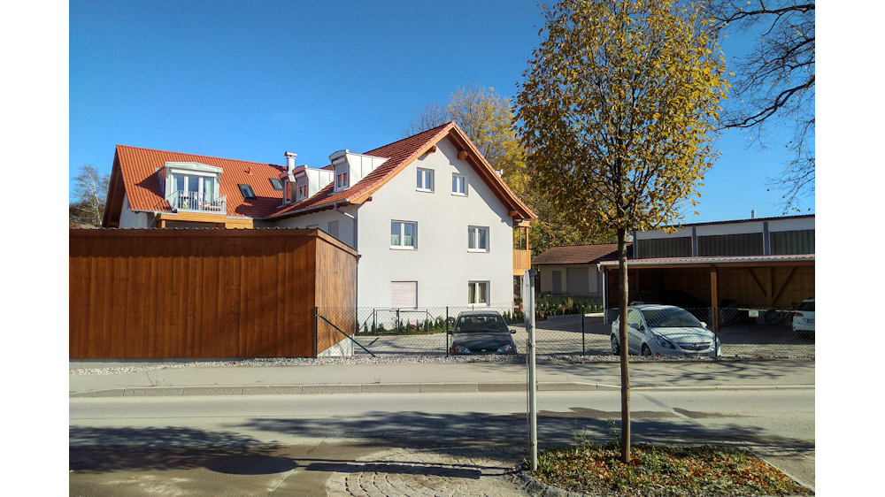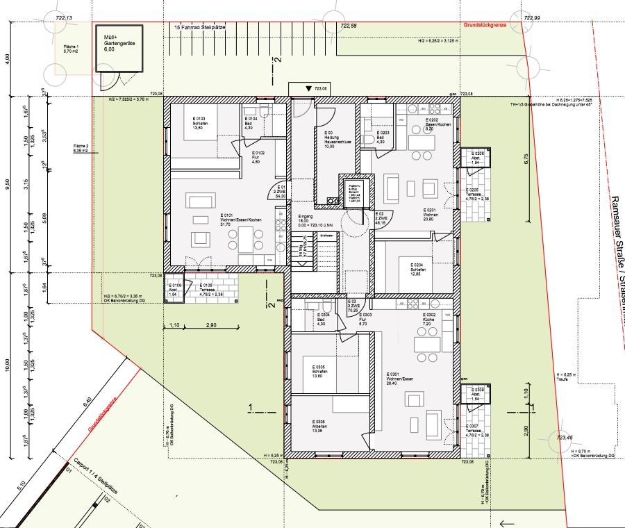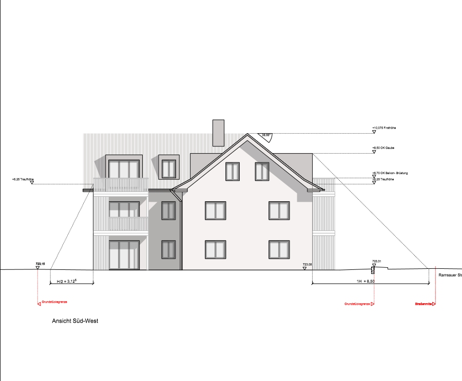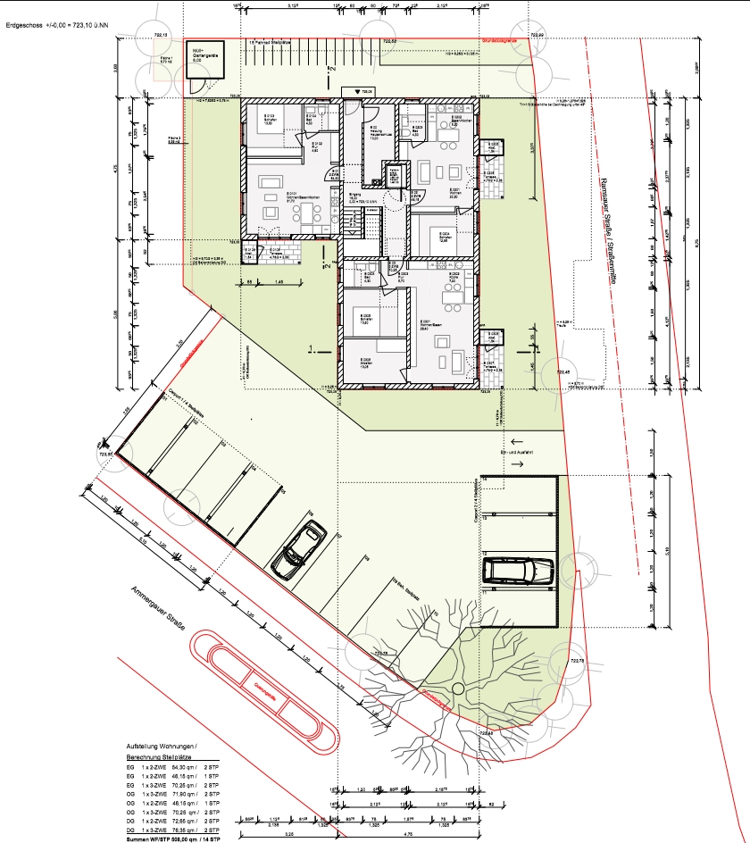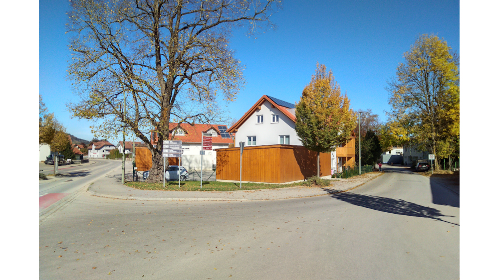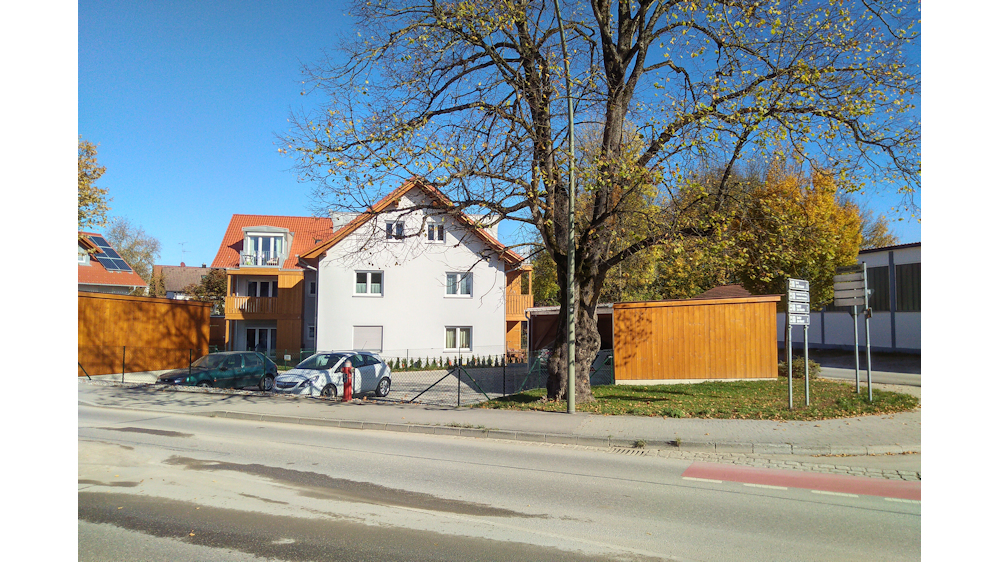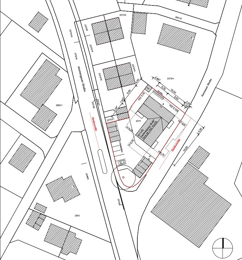 Das Grundstück liegt an der Ecke Ammergauer Straße und Ramsauer Straße. Die Wohnanlage ist nach Südwesten ausgerichtet.