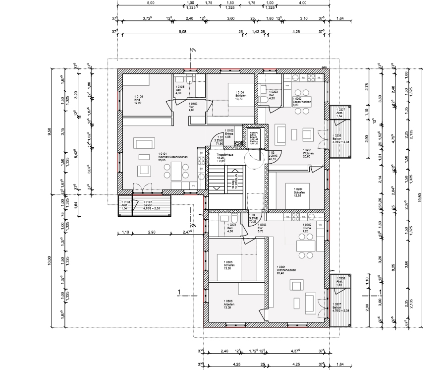Folgende Leistungsmerkmale und Ausstattungen sind in jedem Haus enthalten: